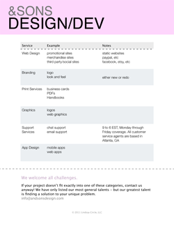whether you need some custom business cards, chat support, or a website update - &SONS is your man/lady. click here to set up a consultation